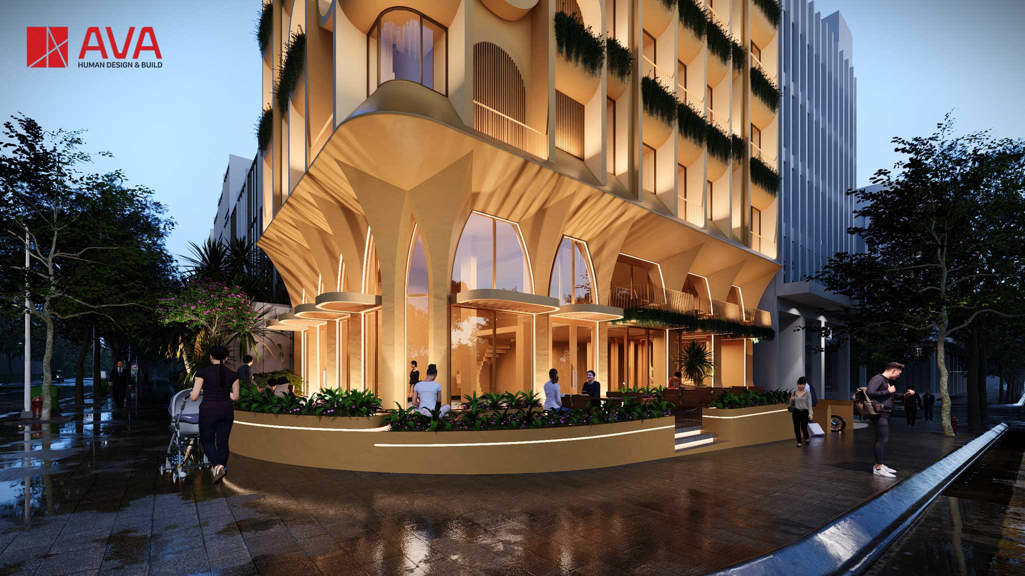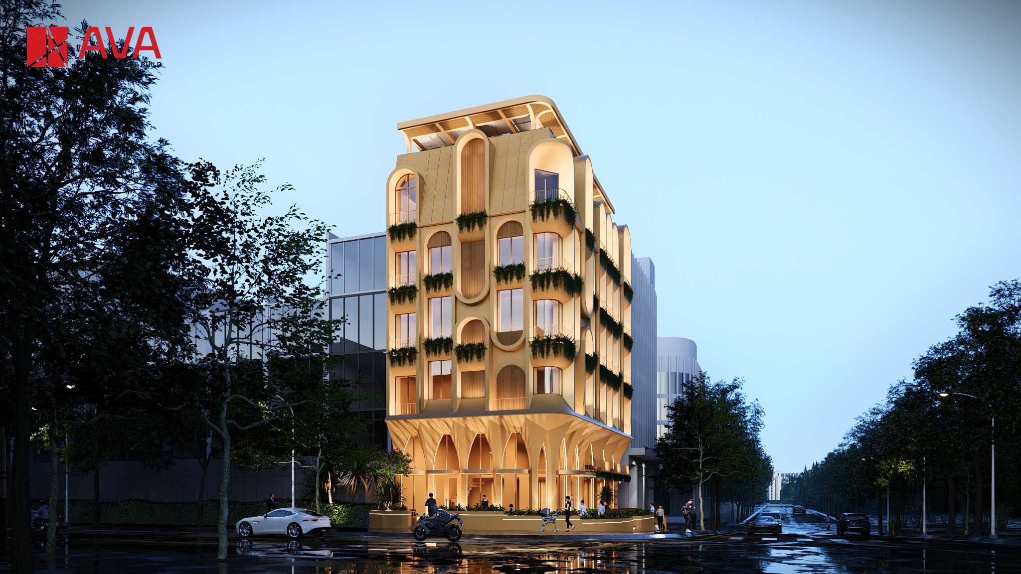 - Diện tích đất: 200 m² - Tổng diện tích sàn: 1.230 m² - Kết cấu: Tầng hầm + 5 tầng + 1 tầng lửng + 1 tum