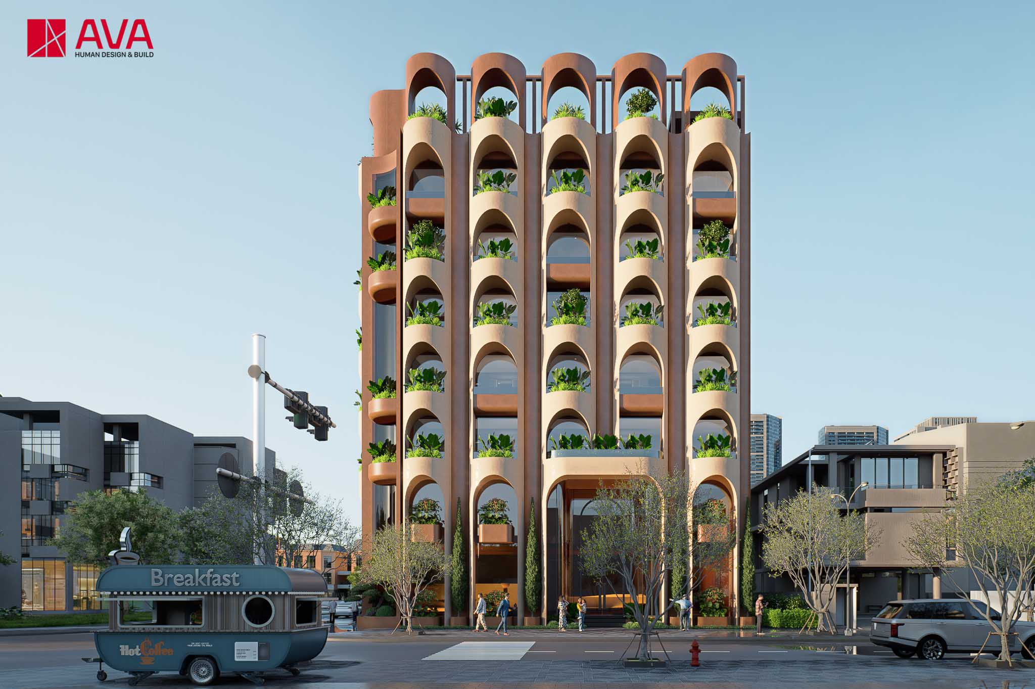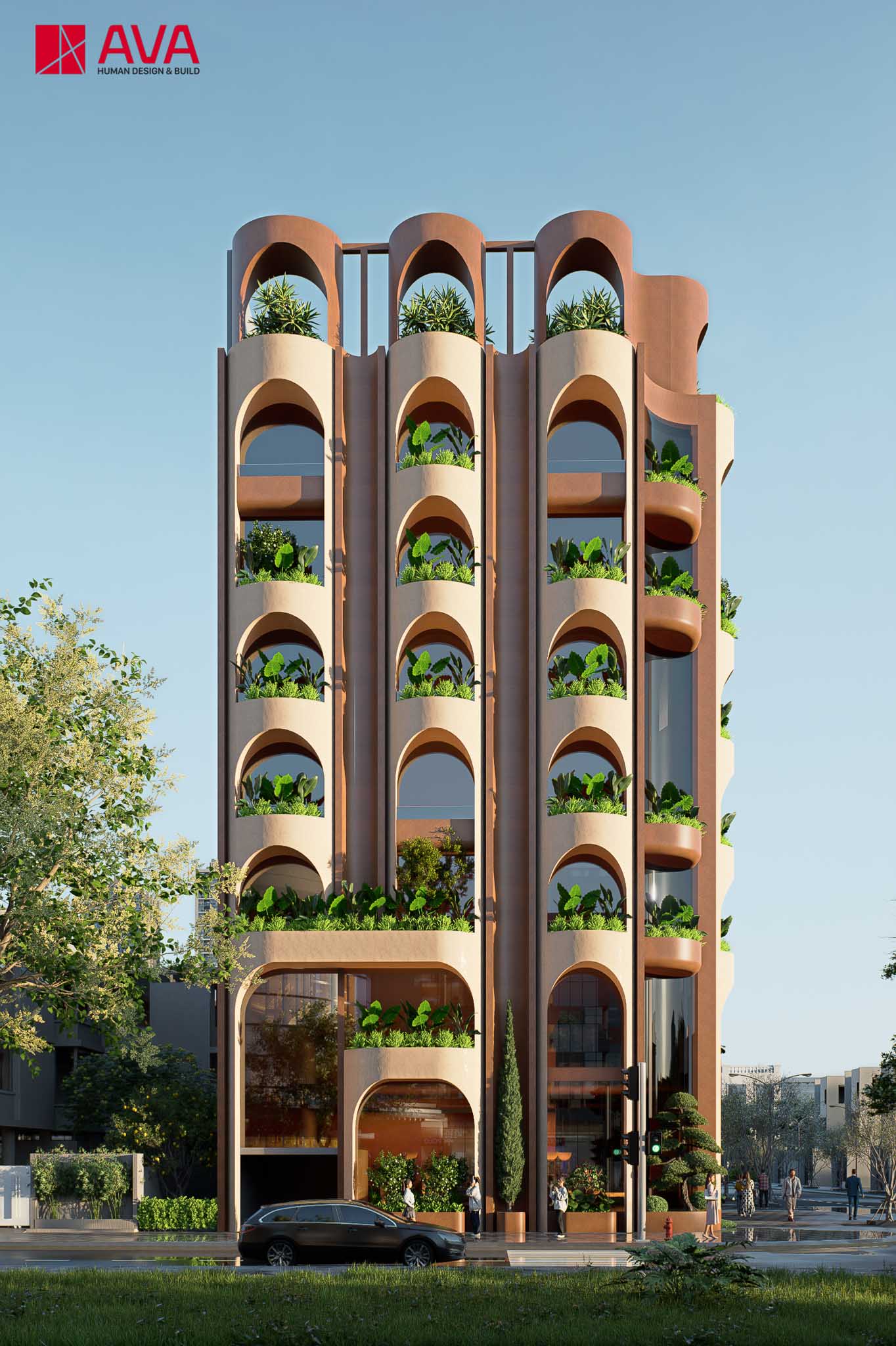 Number of floors: 08 floors + 01 attic; Land area: 370m²; Total construction floor area: 3500m²